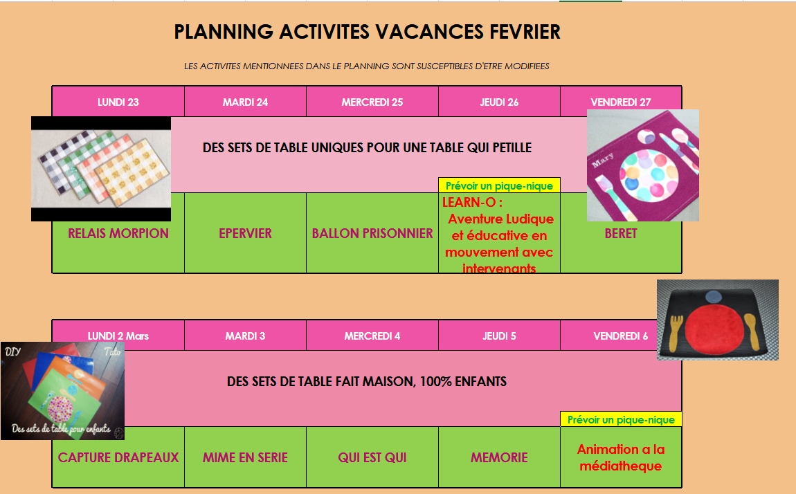 ° Pique-nique à prévoir le jeudi 26 février et le vendredi 6 mars