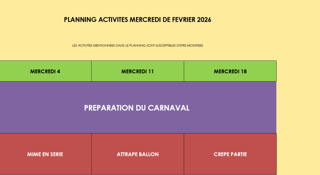 En dehors des périodes scolaires, les mercredis ainsi que lors des vacances de la Toussaint, de Noel, de février, de Pâques et pendant le mois de juillet. Les enfants sont accueillis à partir de 7h30 le matin, jusqu’à 18h30 le soir.