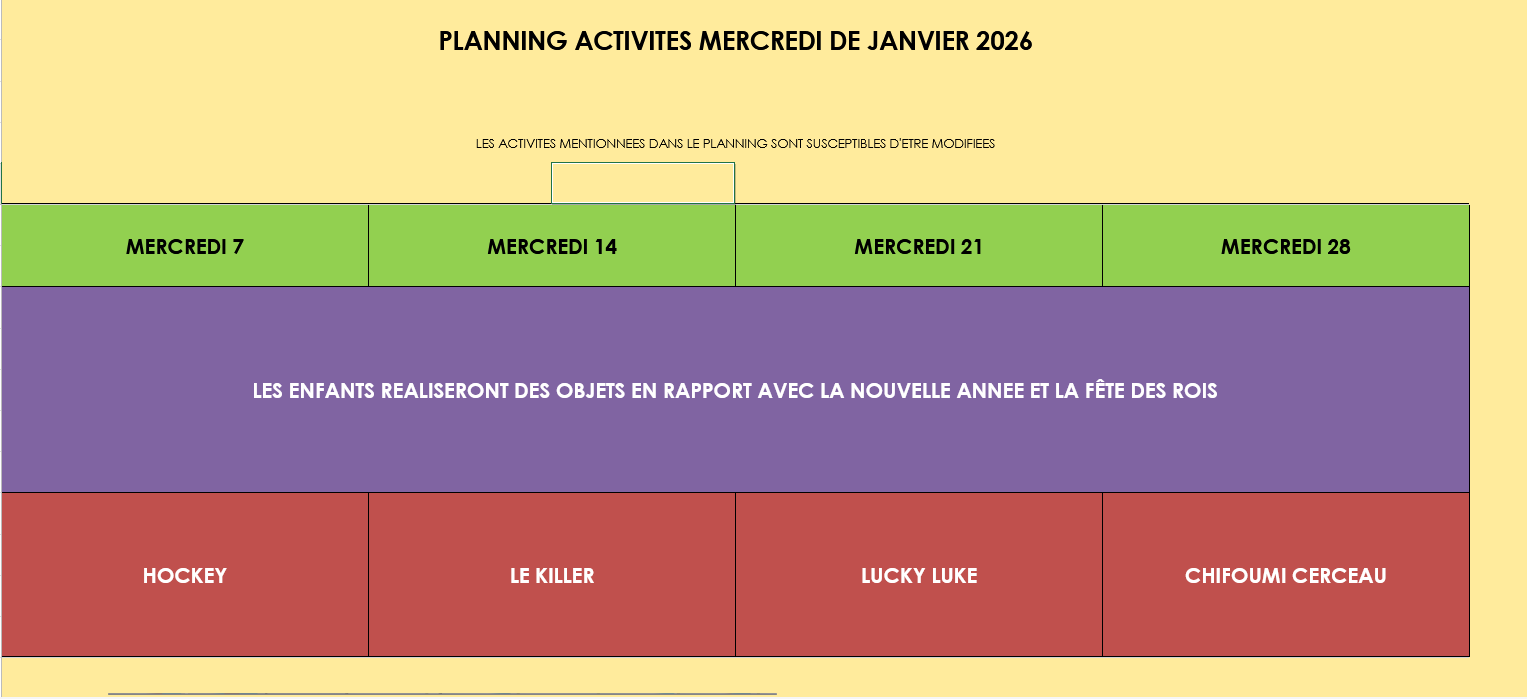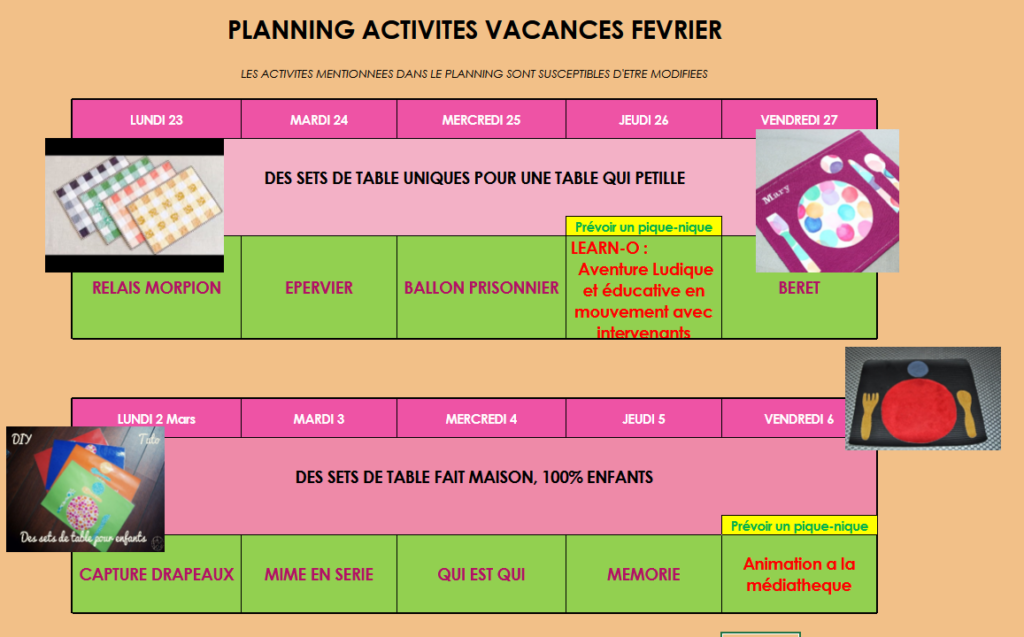 Les programmes d’animation, choisis en fonction de thèmes sont fournis aux parents chaque mois .