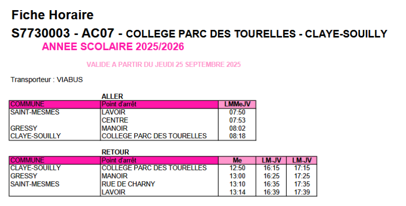 Vous trouverez ci-dessous les horaires de la ligne du bus scolaire pour le collège des tourelles :